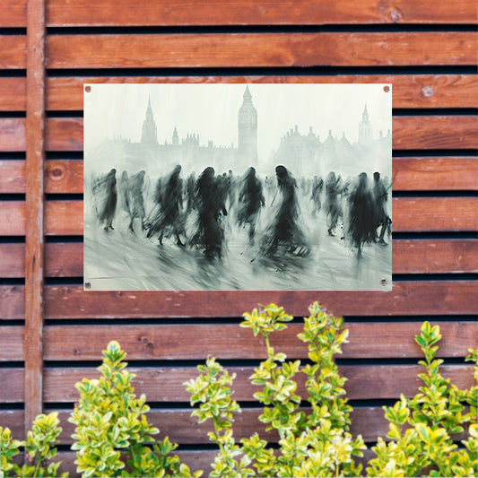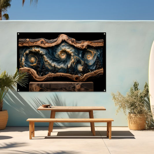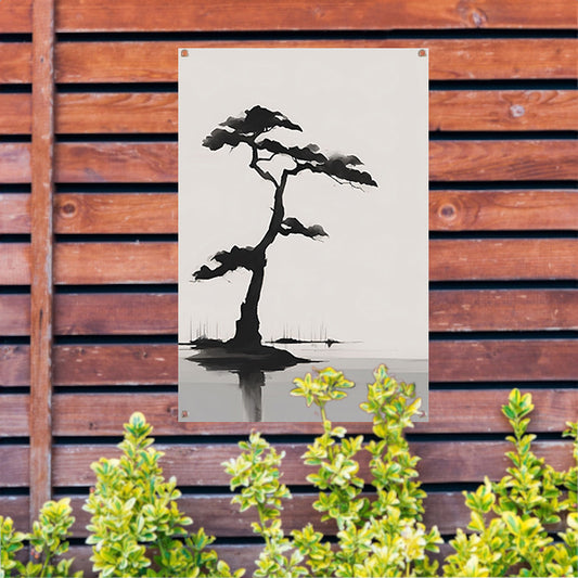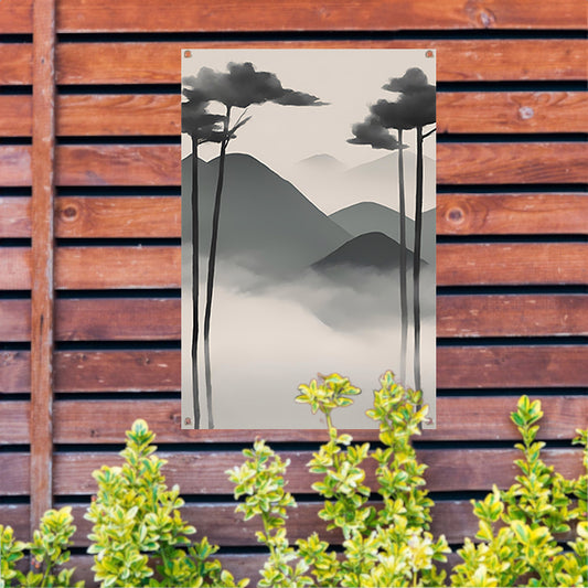 Mystieke abstracte bomen in mistige tinten tuinposter