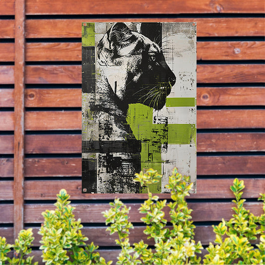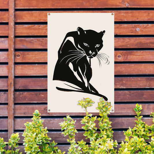 Minimalistisch kunstwerk van een zwarte panter tuinposter