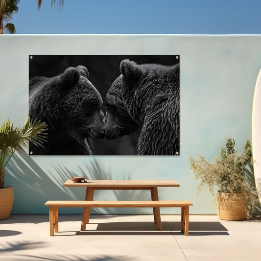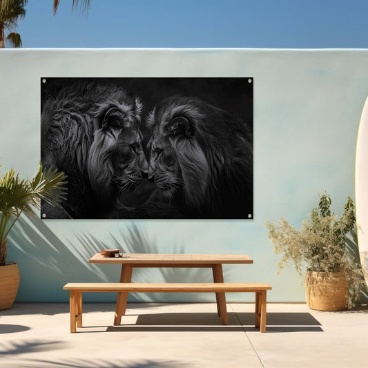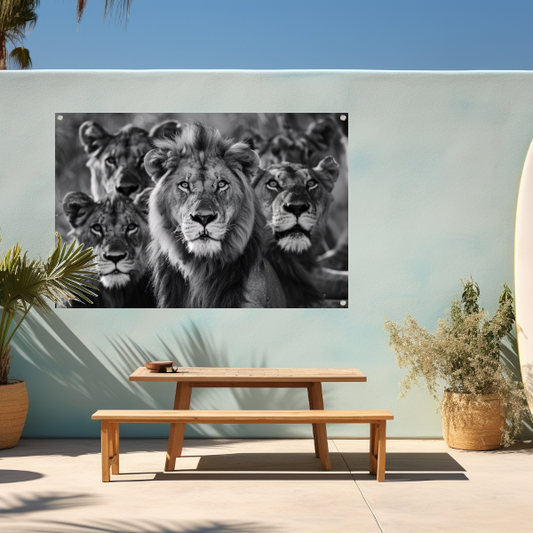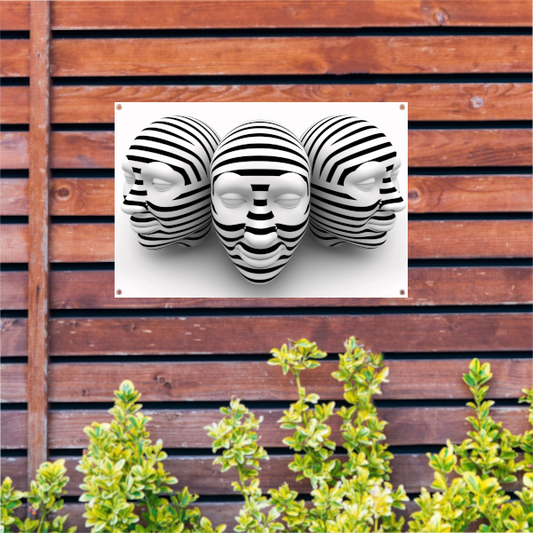 Drie Gestreepte Zwart Wit Maskers tuinposter