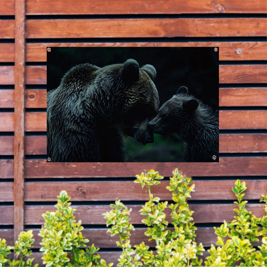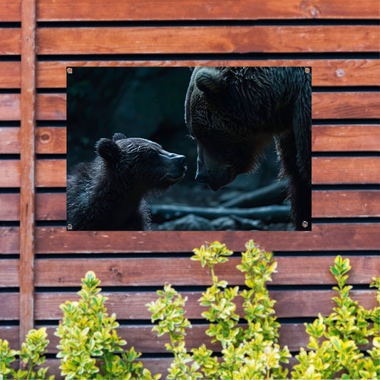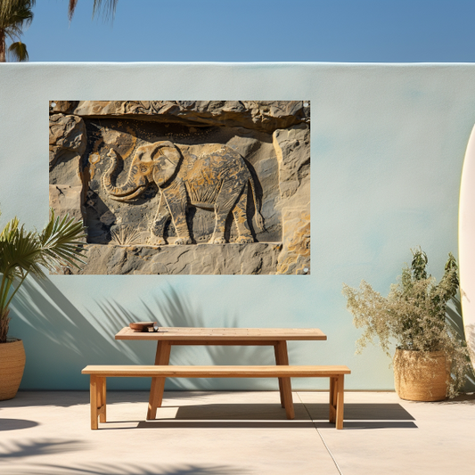 Olifantenfamilie wandeling bij zonsondergang tuinposter