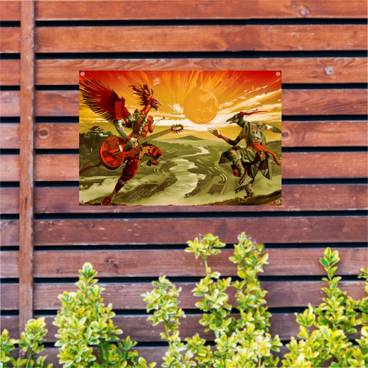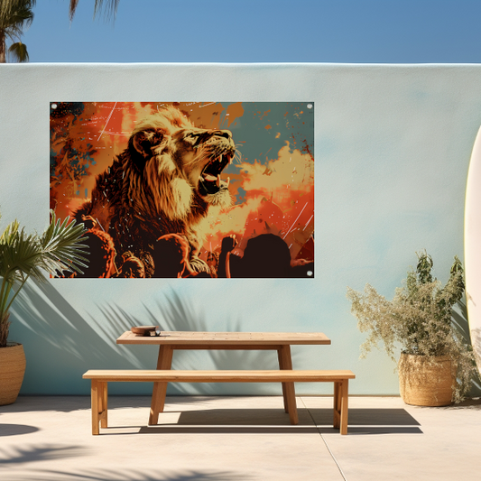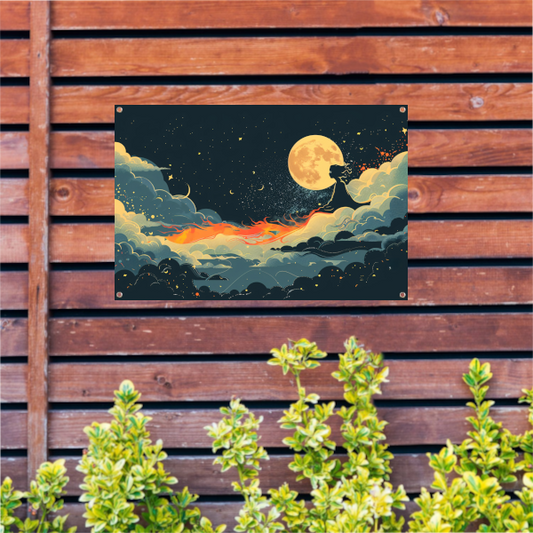 Surrealistische Vliegende Leeuw Maan tuinposter
