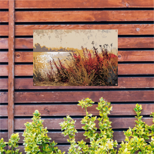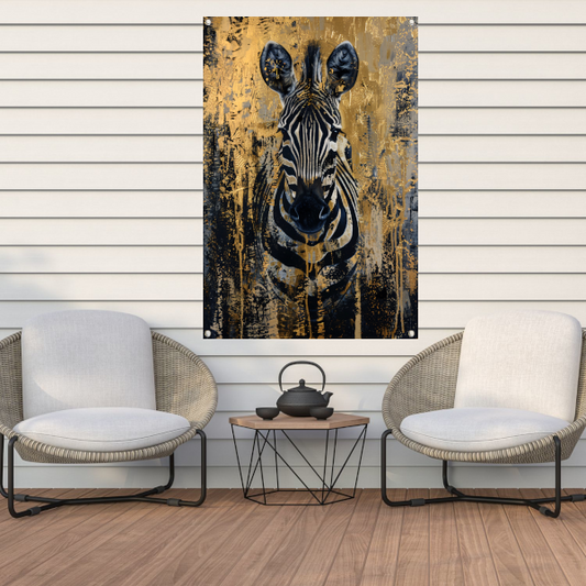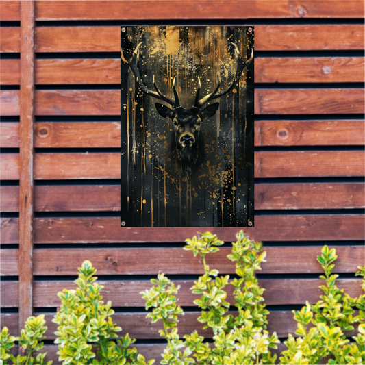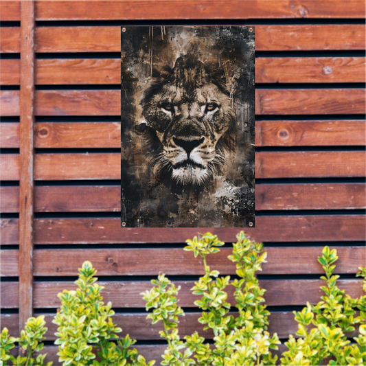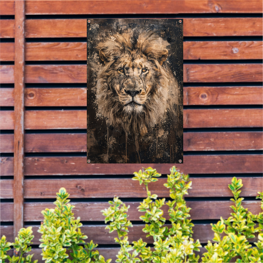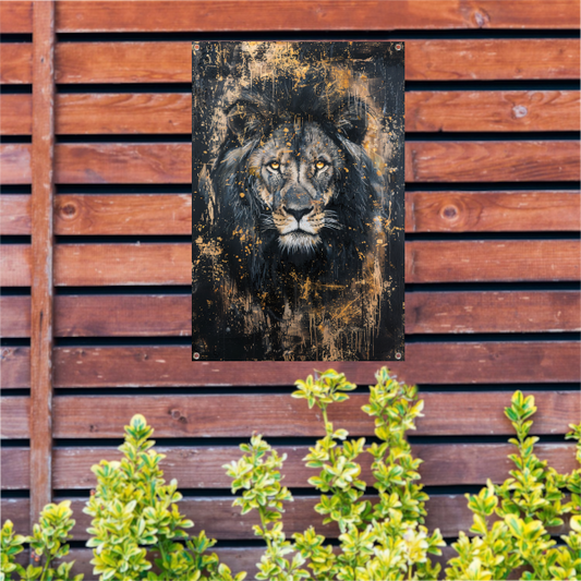 Majestueuze abstracte leeuwenkop met goudaccenten tuinposter
