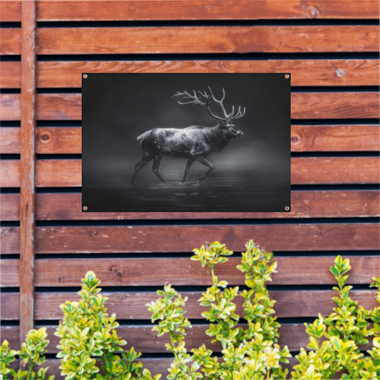 Hyperrealistische zwart-wit foto van hert tuinposter