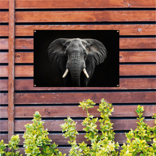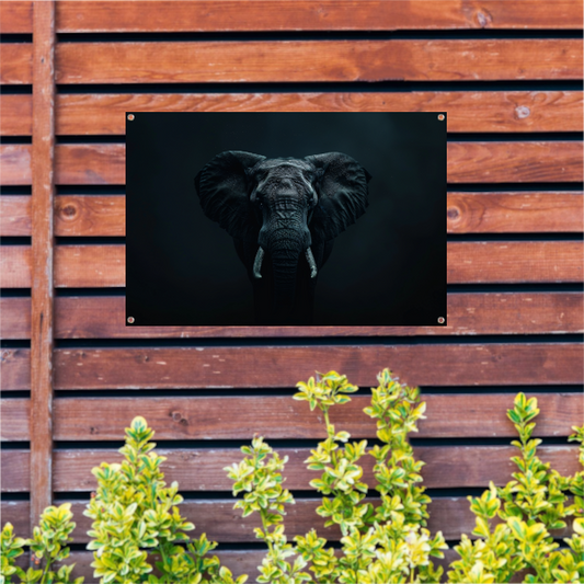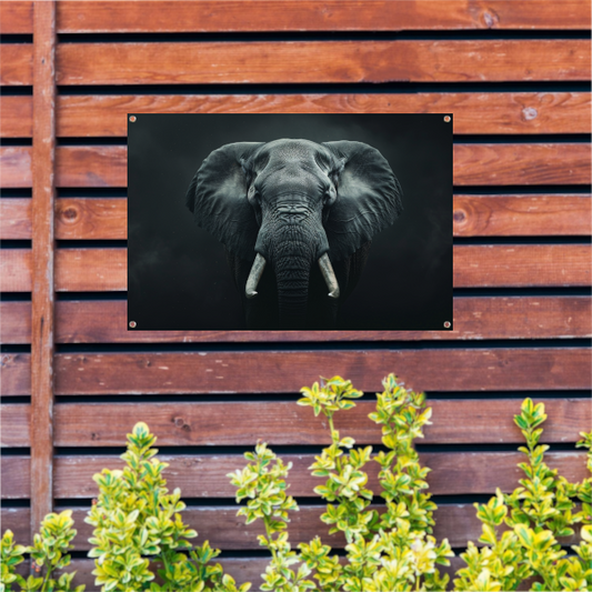 Olifant in het donker met zichtbare schaduwen tuinposter