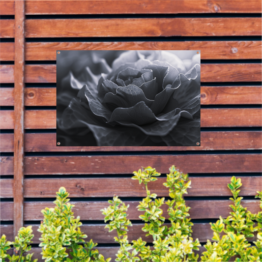 Elegante zwart-wit macrofotografie van een roos tuinposter