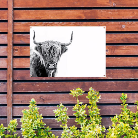 Majestueuze Schotse Hooglander in Hoog Contrast tuinposter