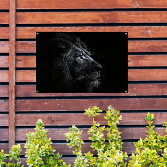 Koninklijke leeuw in zwart-wit portret tuinposter