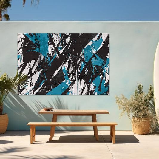 Abstracte dynamiek in zwart, wit en blauw tuinposter