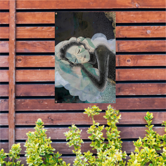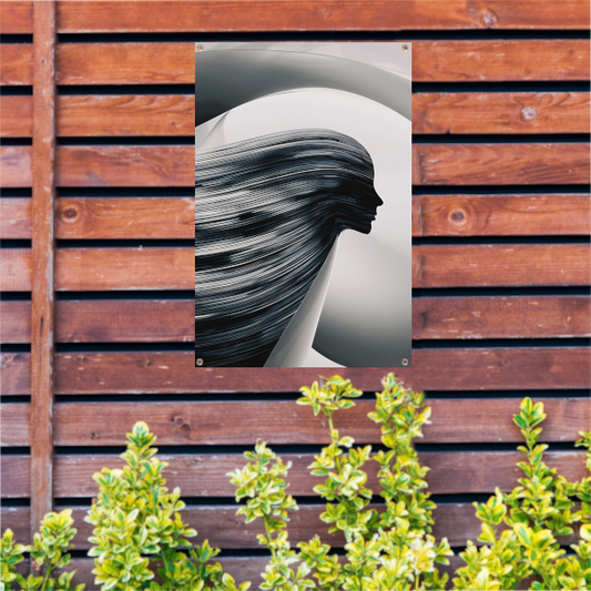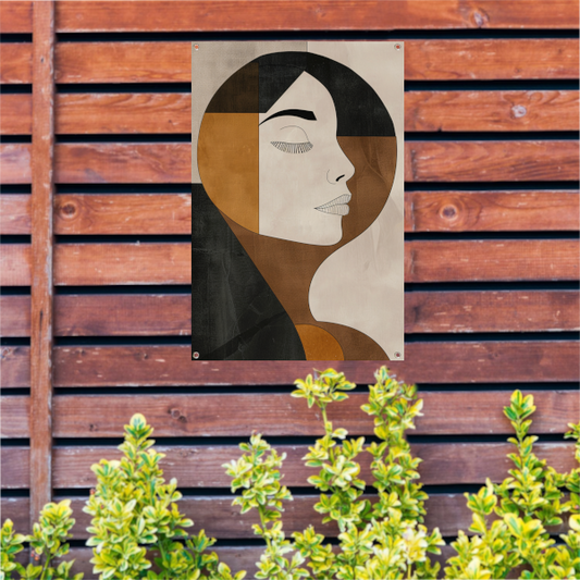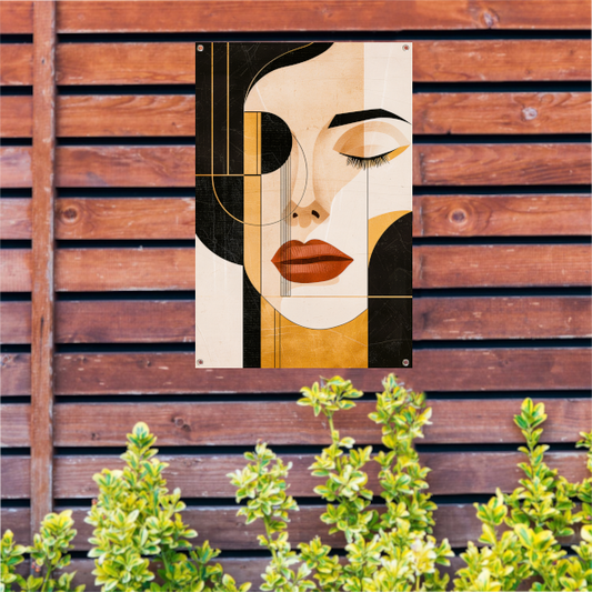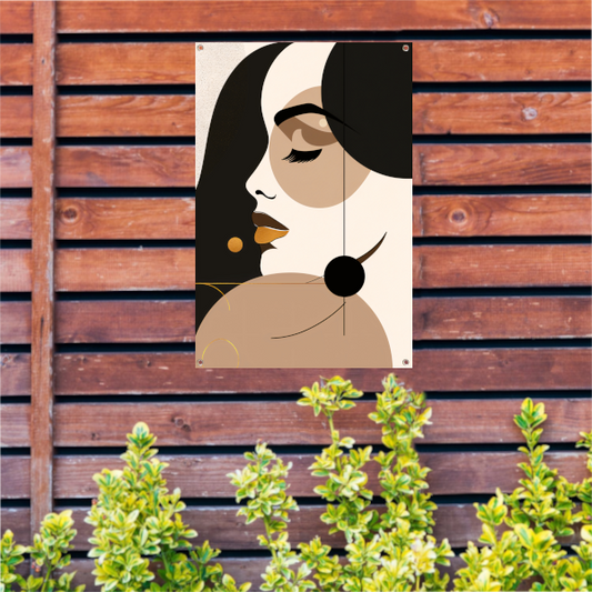 Gezicht van vrouw in abstracte monochrome stijl tuinposter