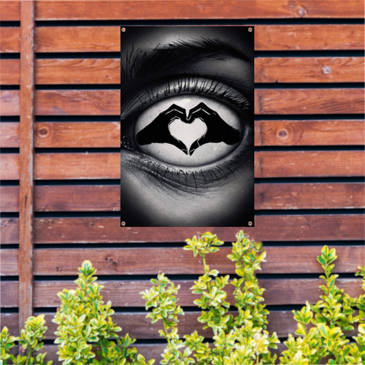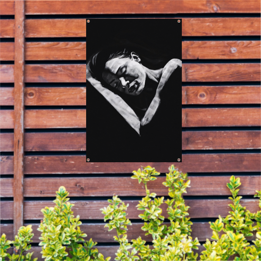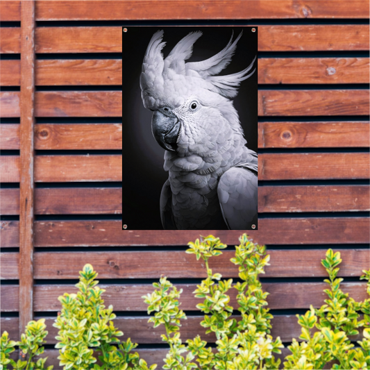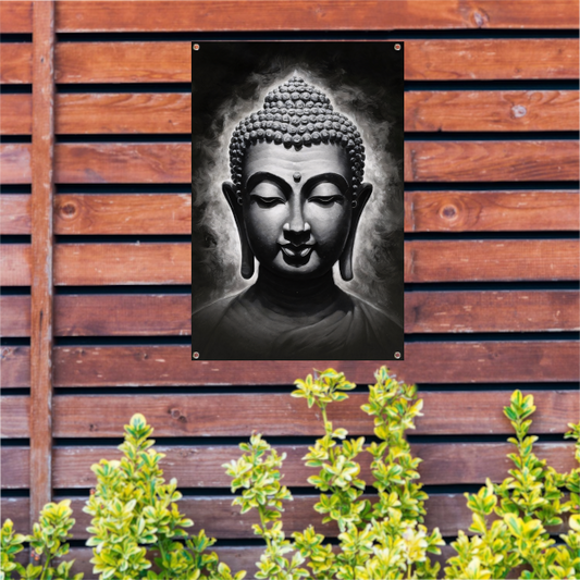 Gebroken gezicht in zwart-witcontrast tuinposter