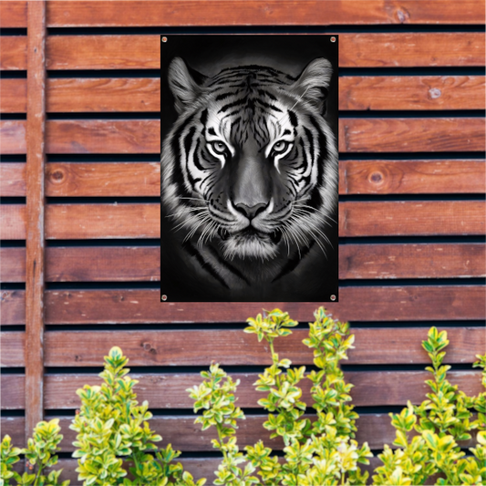 Monochroom Portret van een Majestueuze Tijger tuinposter