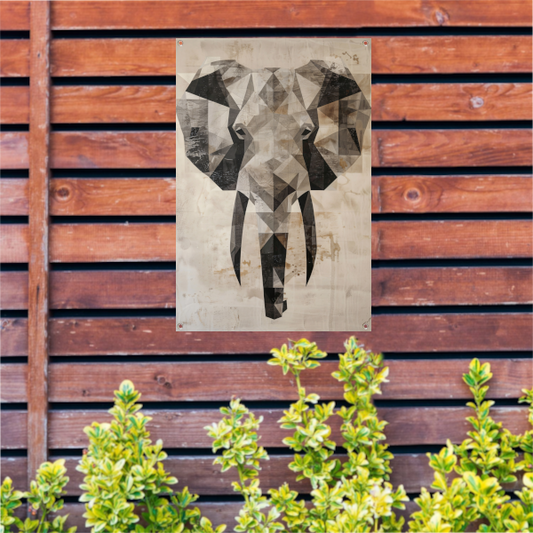 Sepia Geometrische Olifant Kunstwerk tuinposter