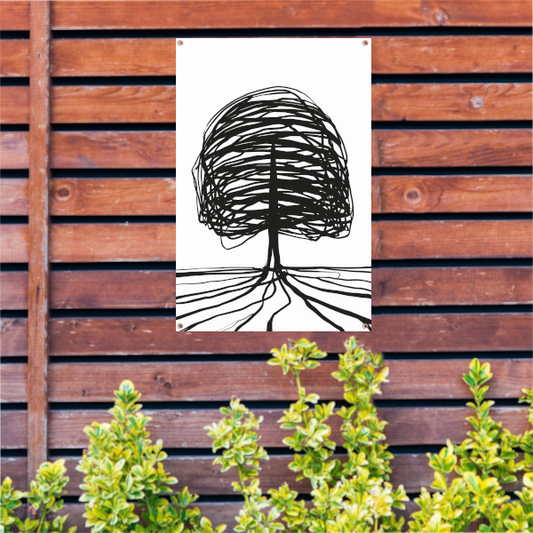 Minimalistische Zwart-Witte Bomenlijn Kunst tuinposter