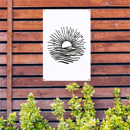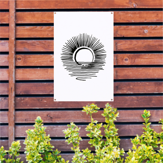 Zwarte en witte minimalistische zonsopkomst tuinposter