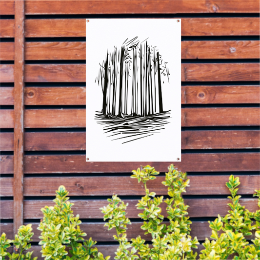 Minimalistische Zwart-witte Bomen Lijntekening tuinposter