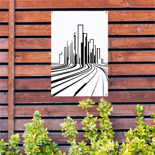 Minimalistische stadslijnen in zwart-wit tuinposter