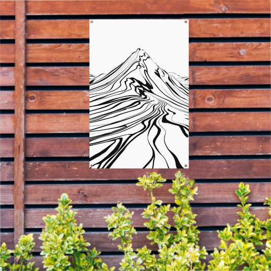 Eenvoudige bergcontouren in zwart en wit tuinposter