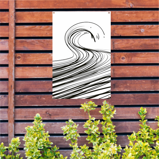 Zwart-wit minimalistische golf lijnkunst tuinposter