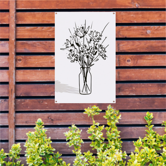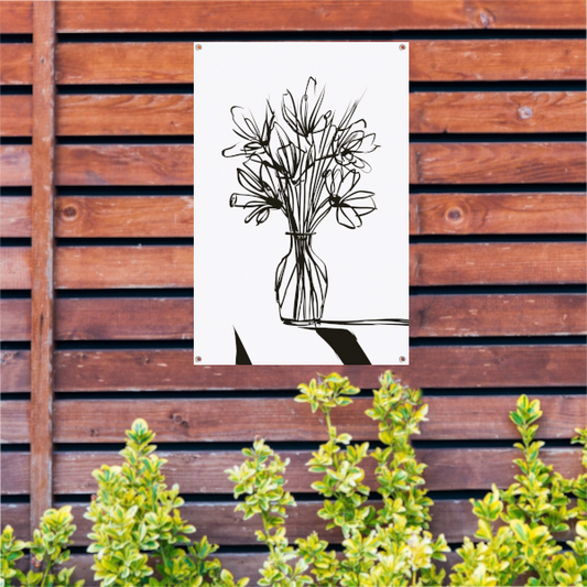 Eenvoudige bloemen in vaas lijntekening tuinposter