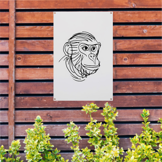 Zwart-witte minimalistische aap lijntekening tuinposter