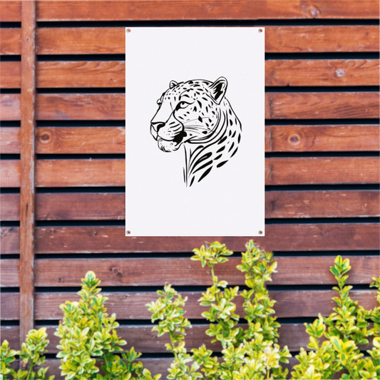 Zwart-witte luipaard lijnkunst minimalisme tuinposter