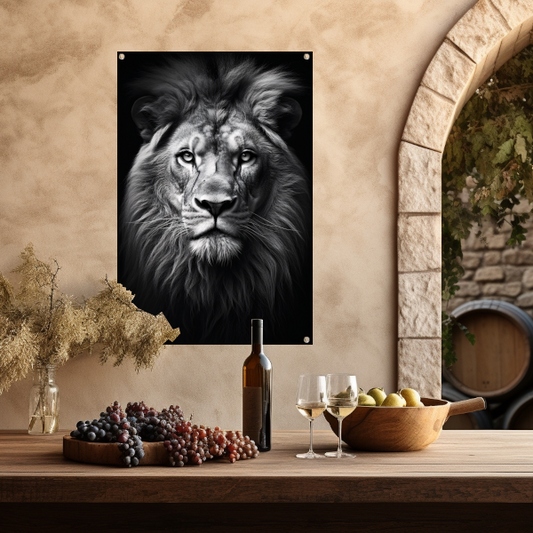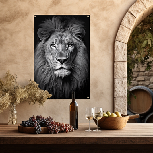 Koning der Dieren: Zwarte en Witte Leeuw tuinposter