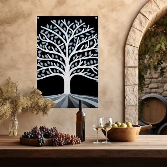 Gestileerde Boom met Perspectief en Blauwe Bladeren tuinposter