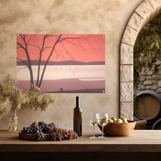 Minimalistische lijnencompositie in rood, blauw en geel tuinposter