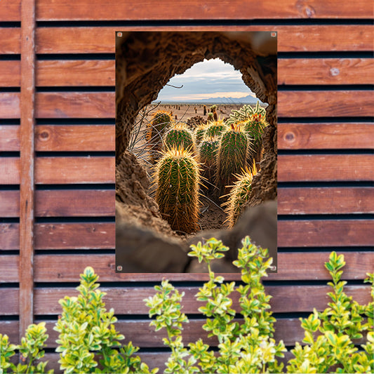 Cactustuin Gevangen in Roestig Raam tuinposter