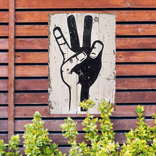 Zwart-witte hand op verweerd hout tuinposter