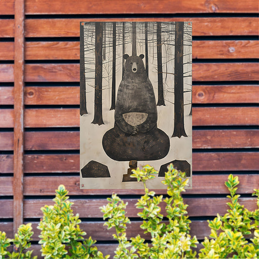 Mediterende Beer in Winterbos tuinposter