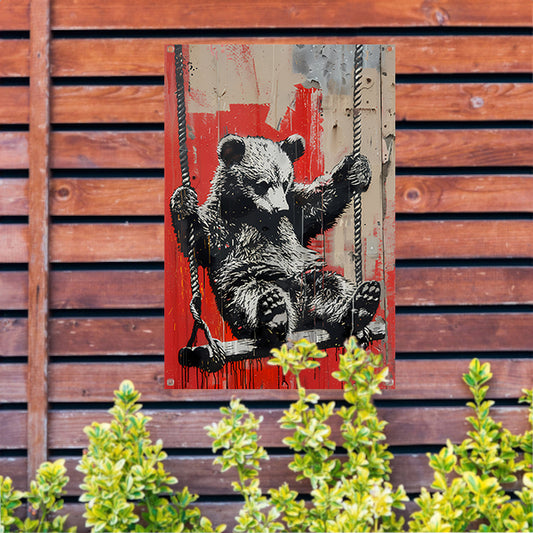 Beer op een schommel tuinposter