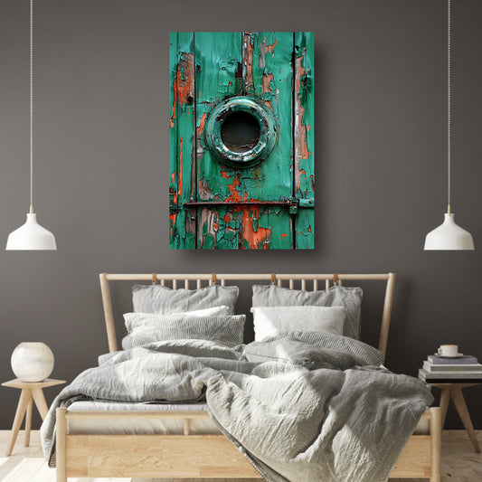 Verweerd Raam in Afbladderende Groene Verf canvas