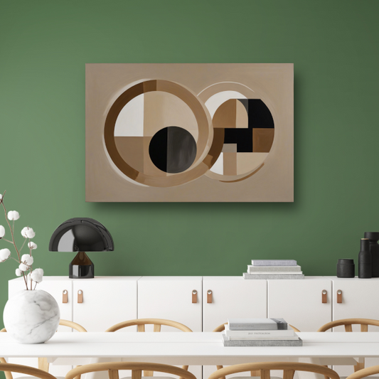 Abstracte Harmonie in Zwart, Beige en Goud canvas