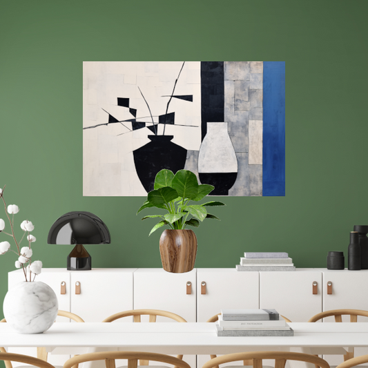 Minimalistisch Kunstwerk van Zwart-Wit Hert op Steen canvas