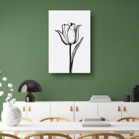 Zwarte lijnen, witte tulp, minimalistisch design canvas