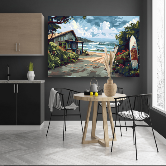 Minimalistisch Strandhuis met Bomen canvas
