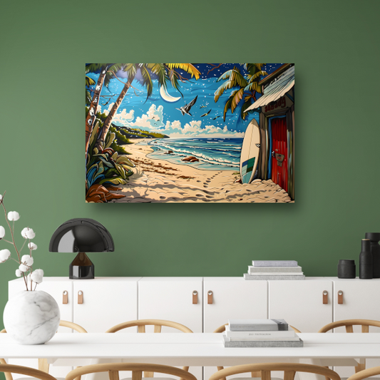 Surfplank op het strand canvas