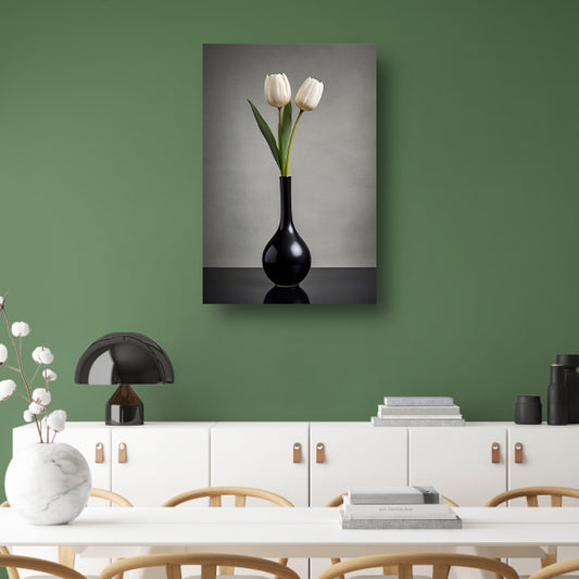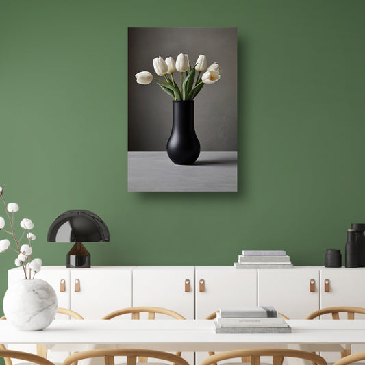 Minimalistische Witte Tulpen in Elegante Zwarte Vaas canvas