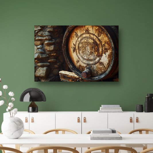 Houten vat met carving canvas