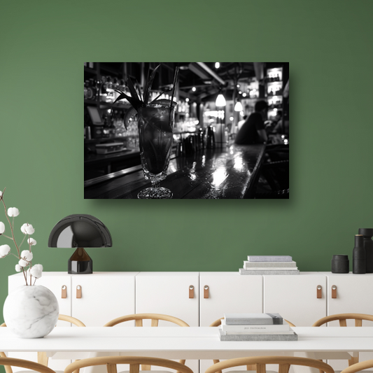 Elegante Zwart-Wit Cocktailbar Momentopname canvas