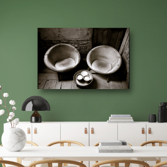 Minimalistische Eetkamer met Stoelen van Mondriaan canvas