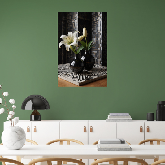 Stilleven met Lelies in Zwart-Witte Vazen canvas