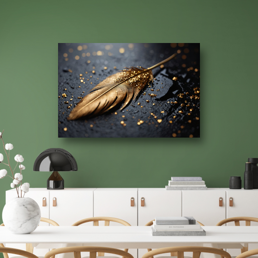 Glanzende Gouden Veer op Zwarte Ondergrond canvas