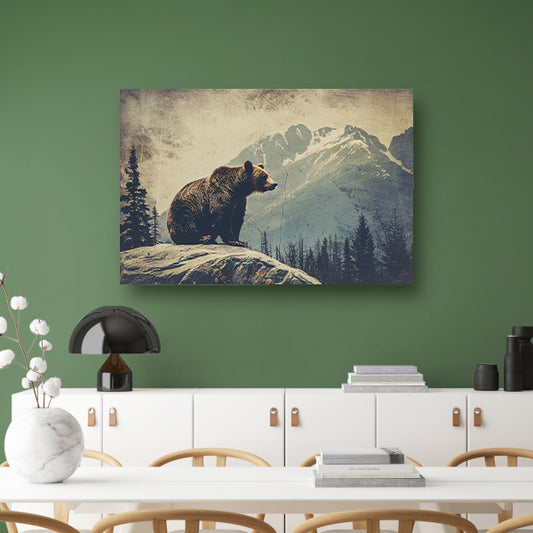 Rustende beer op een stam in zwart-witposter