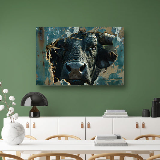 Nieuwsgierige Koe in Beton Cirkel acrylglas