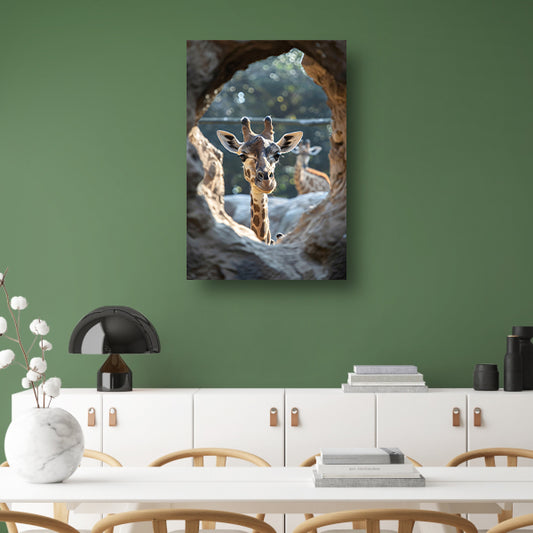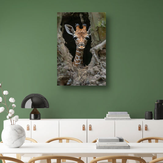 Jonge giraf verkent de wereld acrylglas