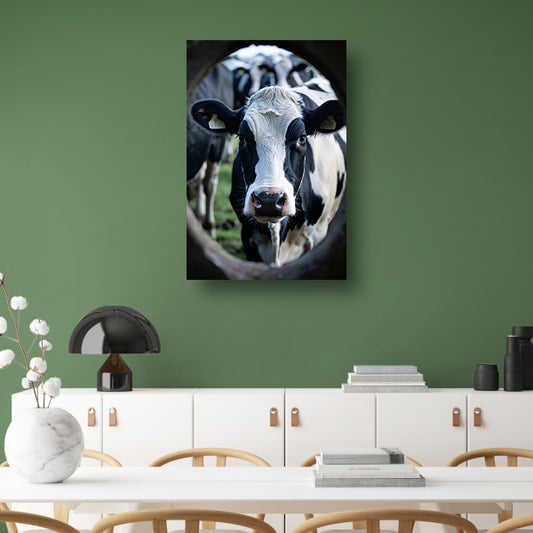 Zwart-wit portret van een koe acrylglas