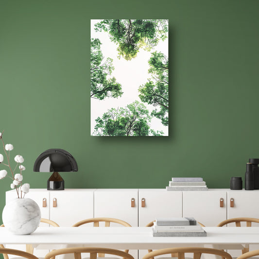 Zwart-wit foto van boomtoppen in het bos acrylglas