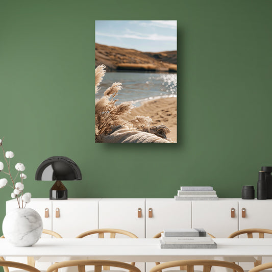 Glinsterende dauwdruppels op grassprieten acrylglas